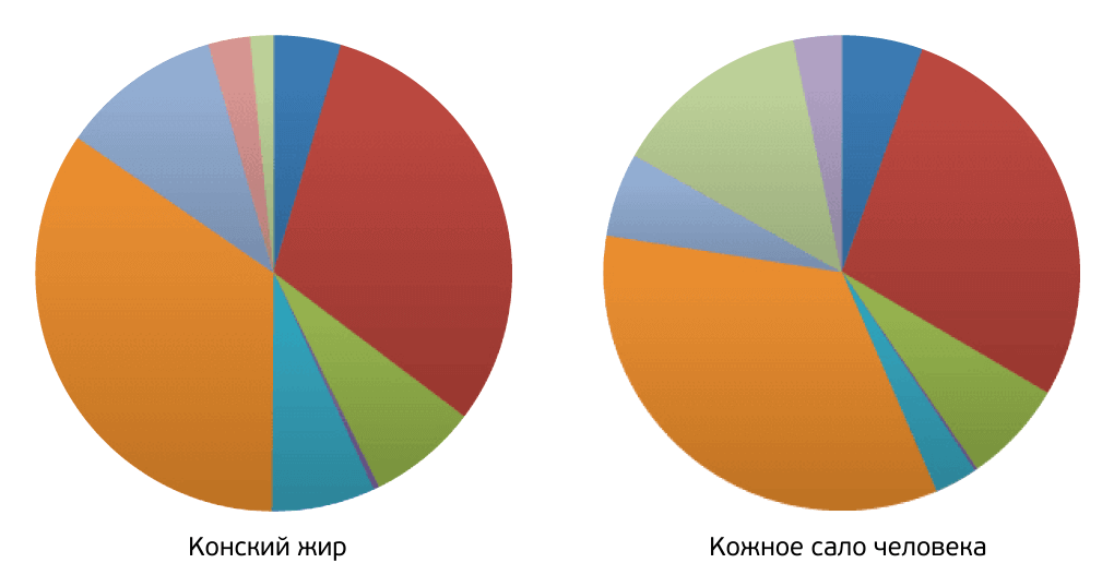Как правило, животные жиры по составу похожи на сливочное масло и шортенинг, но они не впитываются в кожу. Кроме того, состав растительных и фруктовых масел и жиров значительно отличается от состава человеческого жира.